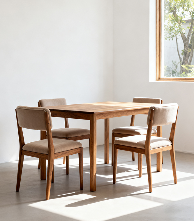 wooden and rattan tables and chairs. With innovation and quality as