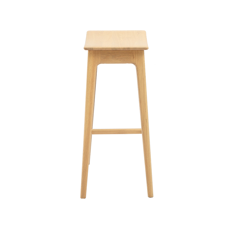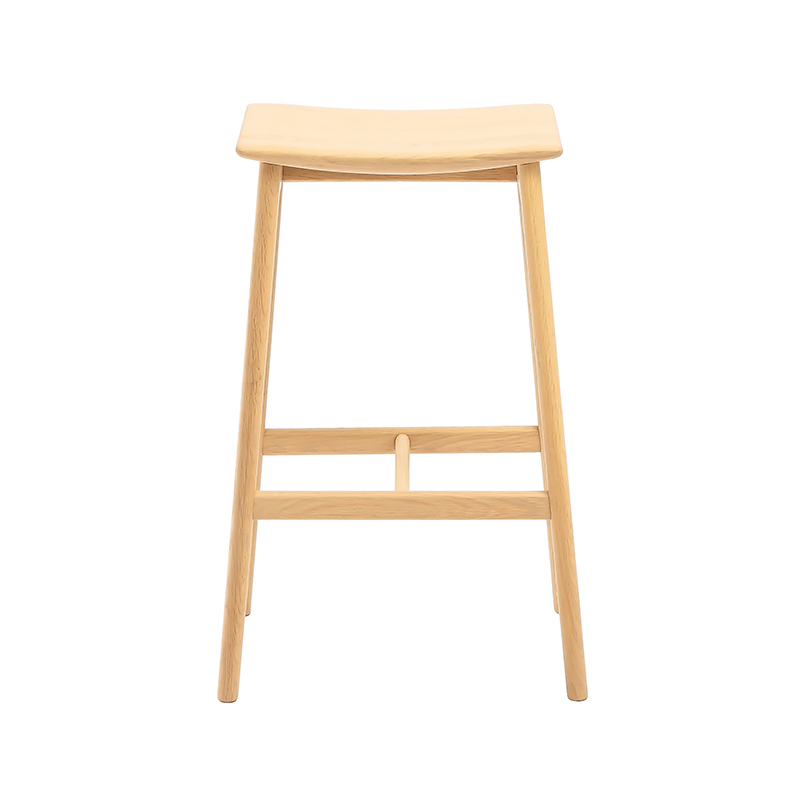 This Arc Seat Dip Wood Bar Stool is crafted from premium solid wood, offering a natural texture and durable strength. The uniquely designed seat features a subtle concave curve that follows ergonomic principles, providing a comfortable sitting experience even during extended use. The fine wood grain and warm tones add a touch of rustic elegance to any space.