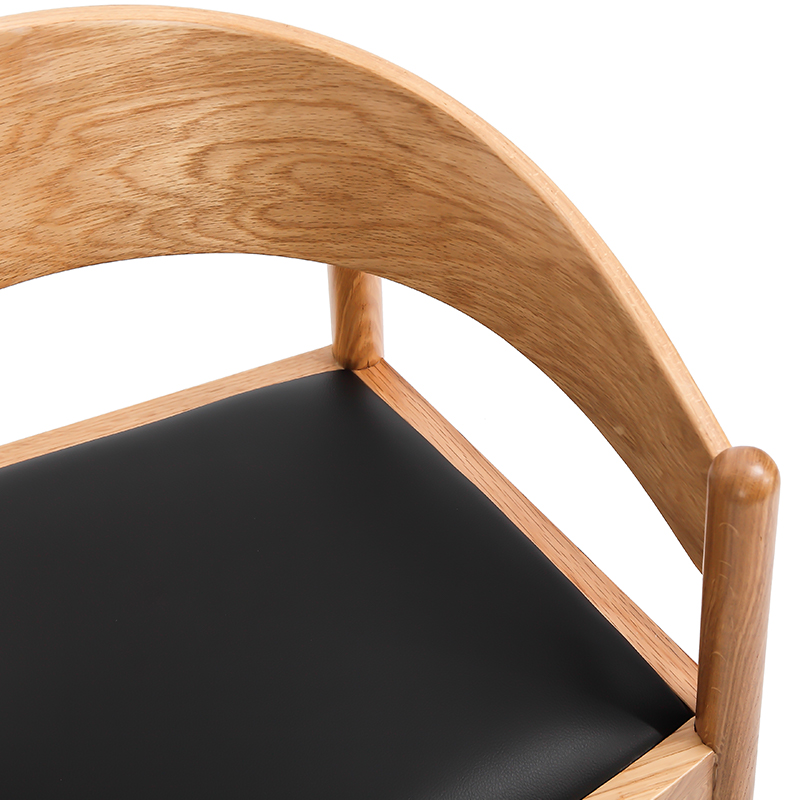 The upholstered seat is covered in premium PU leather, offering a soft, supple touch with the practical benefit of easy maintenance. It provides a supportive yet comfortable feel, maintaining its shape even with frequent use.